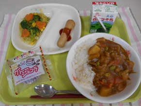 麦ご飯、牛乳、いかのフライ、ポークカレー、海そうサラダ