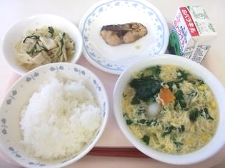 ご飯、牛乳、さばのみそ煮、酒ノ津わかめのすまし汁、アスパラガスのじゃこ炒め